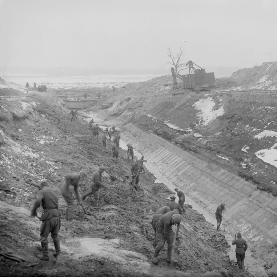 1939 bis 1945Historische Forschungen zeigen, dass Lippeverband und Emschergenossenschaft Teil des menschenverachtenden nationalsozialistischen Systems waren: Beide Wasserverbände entließen Mitarbeitende jüdischen Glaubens oder sozialdemokratischer Überzeugung und beschäftigten über ihre Auftragnehmer*innen indirekt Zwangsarbeiter*innen auf ihren Baustellen. Aus dieser historischen Verantwortung heraus leiten EGLV heute einen klaren Auftrag ab: Demokratie zu fördern – nach innen wie nach außen.