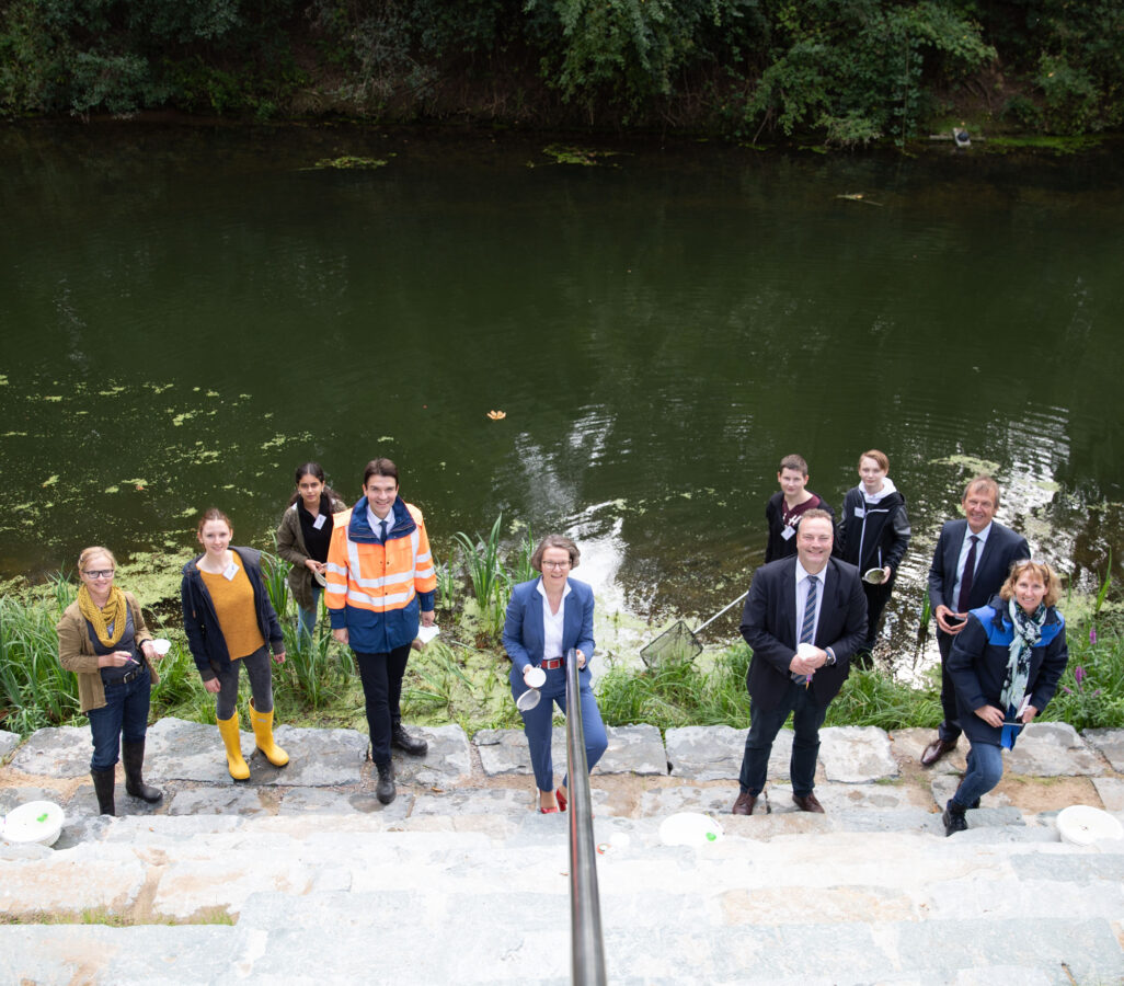 9. September 2020Am 9. September eröffnen der Lippeverband und die Stadt Haltern am See gemeinsam das erste Blaue Klassenzimmer. Auf einer 220 Quadratmeter großen und von Bäumen umringten Fläche an der Stever kann nun Unterricht direkt am Gewässer stattfinden.